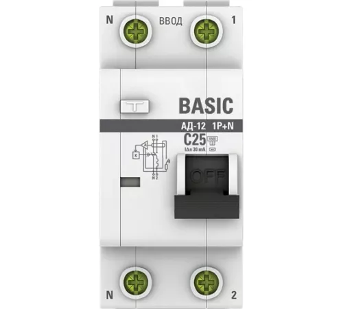 Автоматический выключатель дифференциального тока 1P+N 25А Basic