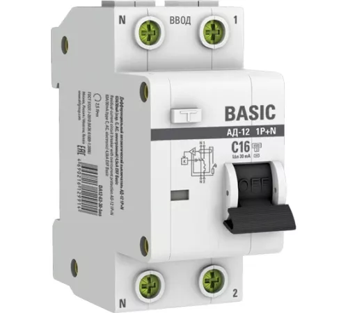 Автоматический выключатель дифференциального тока 1P+N 16А Basic