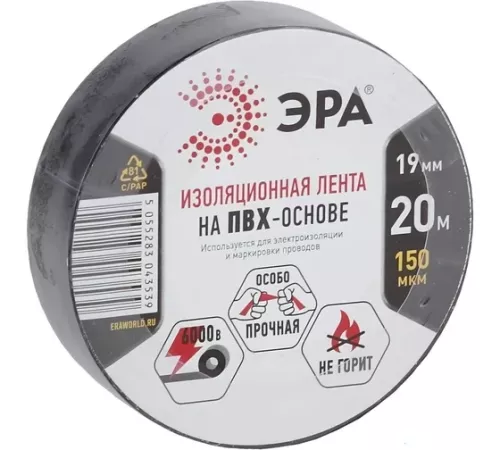 ЭРА изолента ПВХ 19/20 черная 0.15х19 мм, 20м