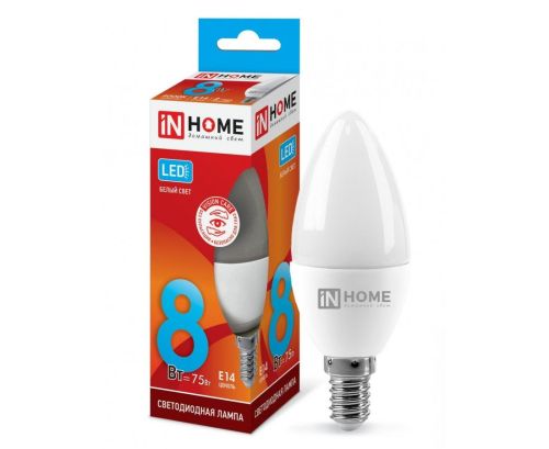 ASD/InHome лампа св/д свеча C37 E14 8W(760lm) 4000К 4K 107x37 (без пульсации)