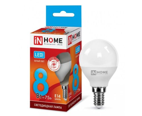 ASD/InHome лампа св/д шар P45 E14 8W(760lm) 4000К 4K 83x45 (без пульсации)