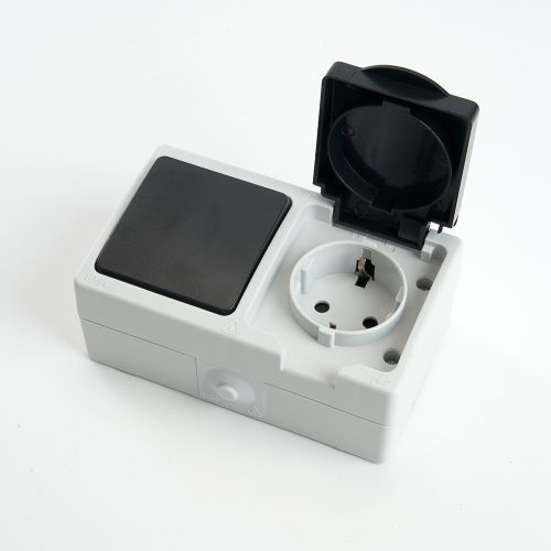 STEKKER ВЕЛЕНА Блок (роз.1 мест. + 1 кл.) серый/графит IP54