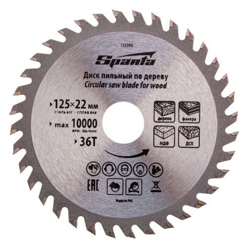 Пильный диск по дереву, ф125 х 22 мм, 36 зубьев// Sparta