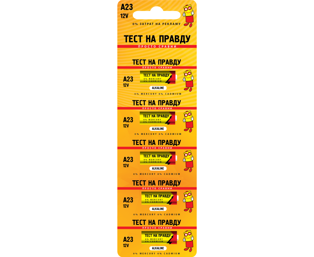 Элементы питания Тест на правду с щелочным электролитом (алкалиновые) с напряжение 12V размера А23 предназначены для использования в портативных приборах - пультах, автомобильных брелках, бесконтактных ключах, беспроводных звонках и т.д..
