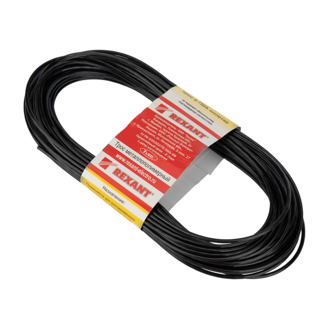 Трос стальной в ПВХ изоляции d=2.5 мм, моток 20 метров, ЧЕРНЫЙ