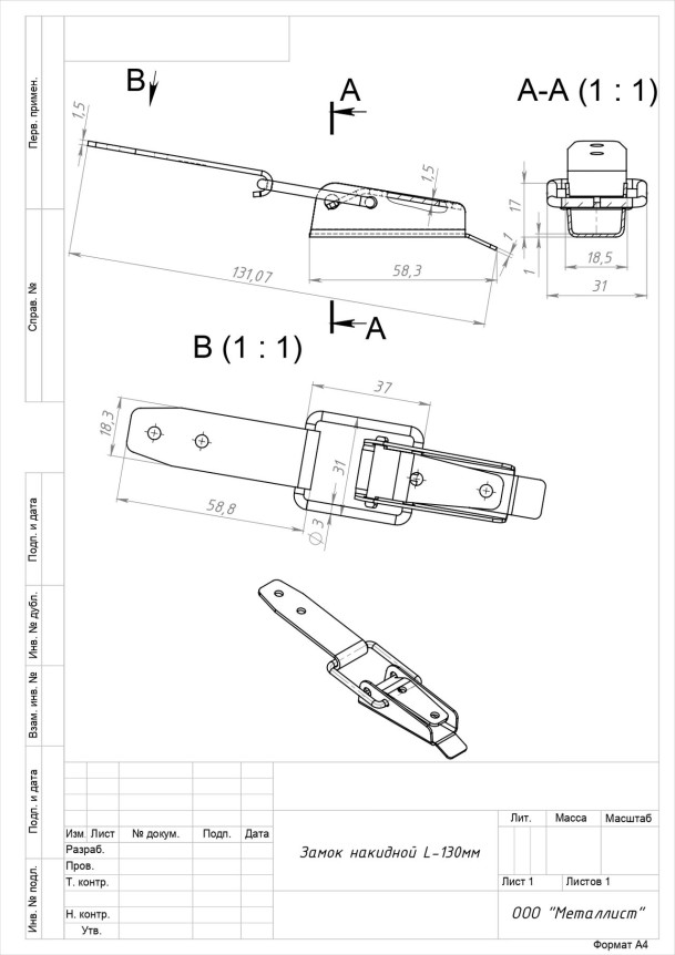 Кунгур замок накидной L-130 мм цинк