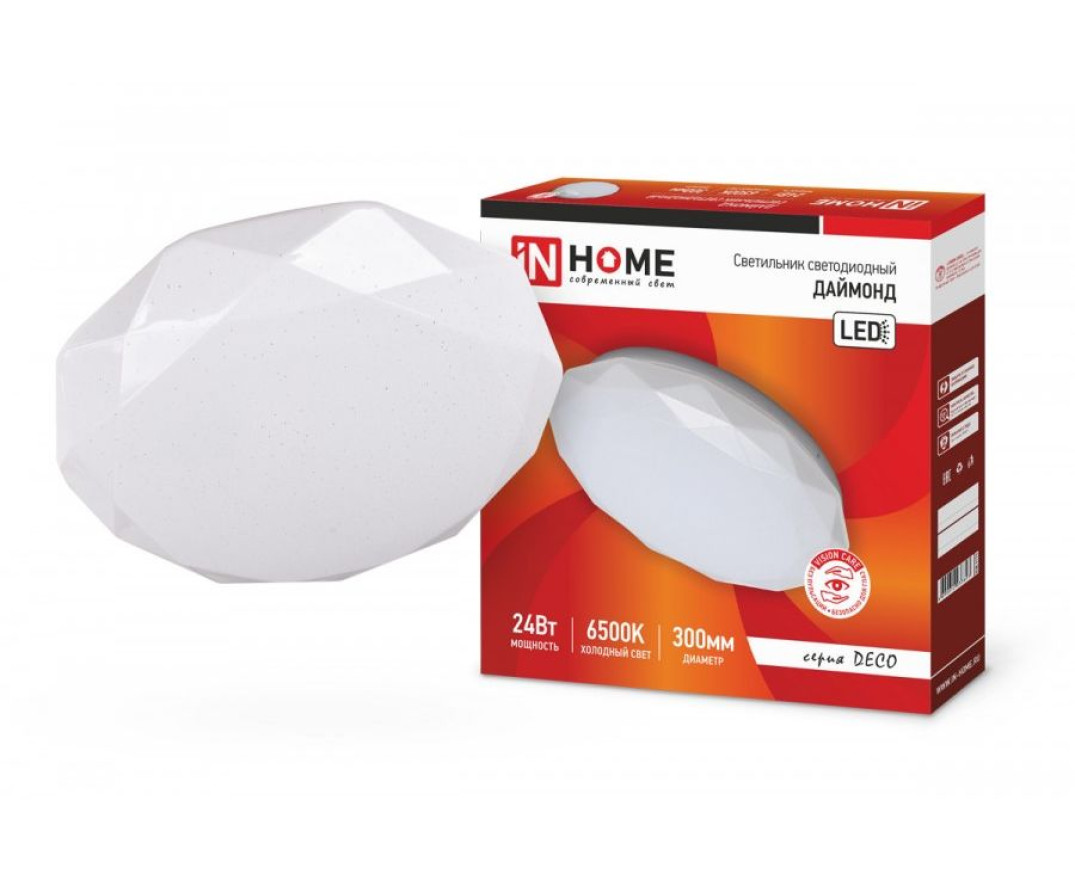 - Полное наименование: Светильник светодиодный серии DECO 24Вт 230В 6500К 1560лм 300мм ДАЙМОНД IN HOME