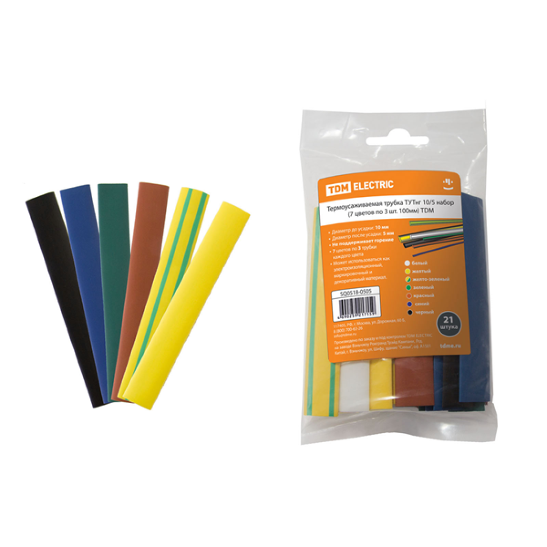 10/5 термоусаживаемая трубка набор, цена за набор (7цв по 3шт 100мм