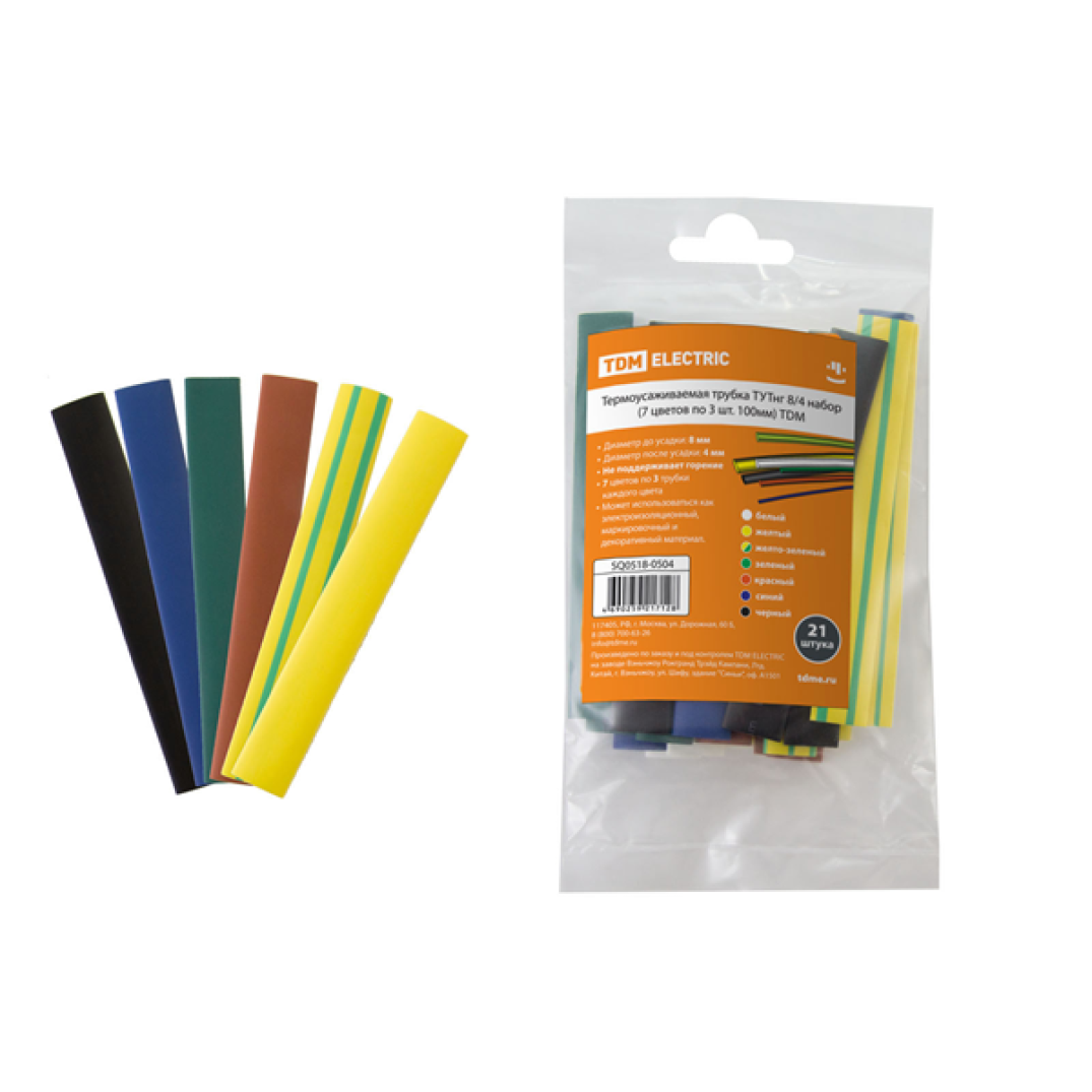 8/4 термоусаживаемая трубка набор, цена за набор (7цв по 3шт 100мм