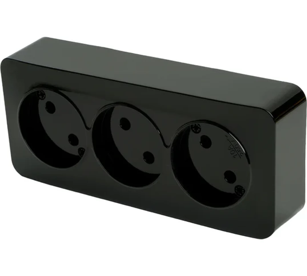 Розетка MST10-13-02 на 3 поста, без заземления. Материал: ABS пластик, цвет черный, размер 160х60х30мм. Номинальное напряжение 230, номинальный ток 10А, диапазон рабочих температур 0..+35°C, IP20. Серия София "TM Stekker" открытой установки выполнена в современном дизайне.