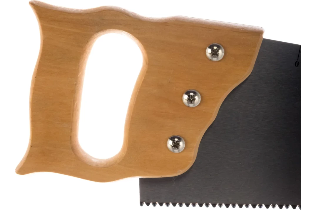 Ножовка по дереву средний зуб 500мм обладает значительной длиной, что упрощает обработку деревянных заготовок больших размеров. Инструмент оснащается удобной рукояткой, которая обеспечивает защиту ладони в процессе пиления.