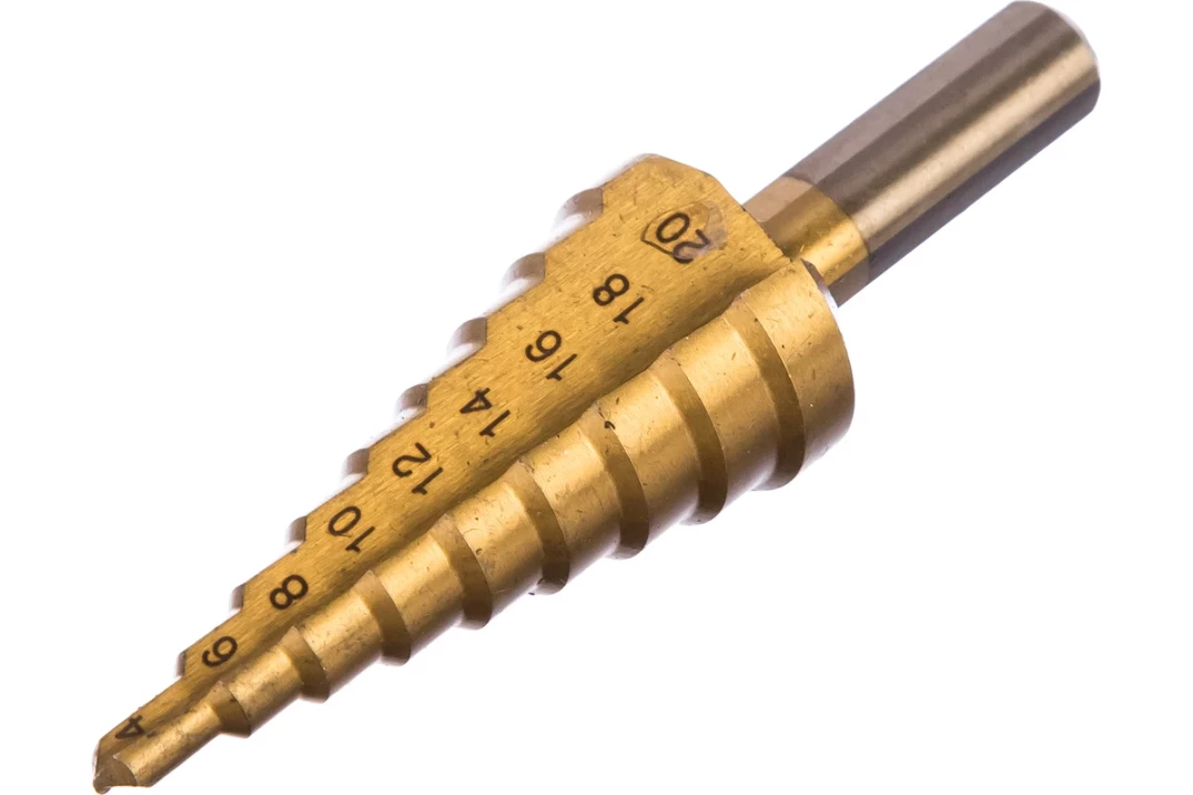 Сверло ступенчатое по мет. Р6М5 TIN d 4-20мм