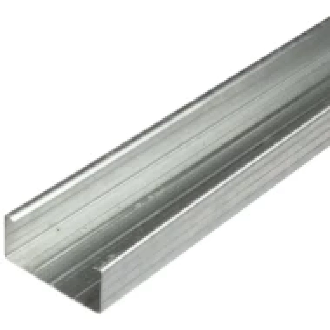 Толщина изделия составляет 0,6 мм, поэтому профиль легко выдерживает нагрузку всей конструкции. В качестве материала изготовления используется оцинкованная сталь.
