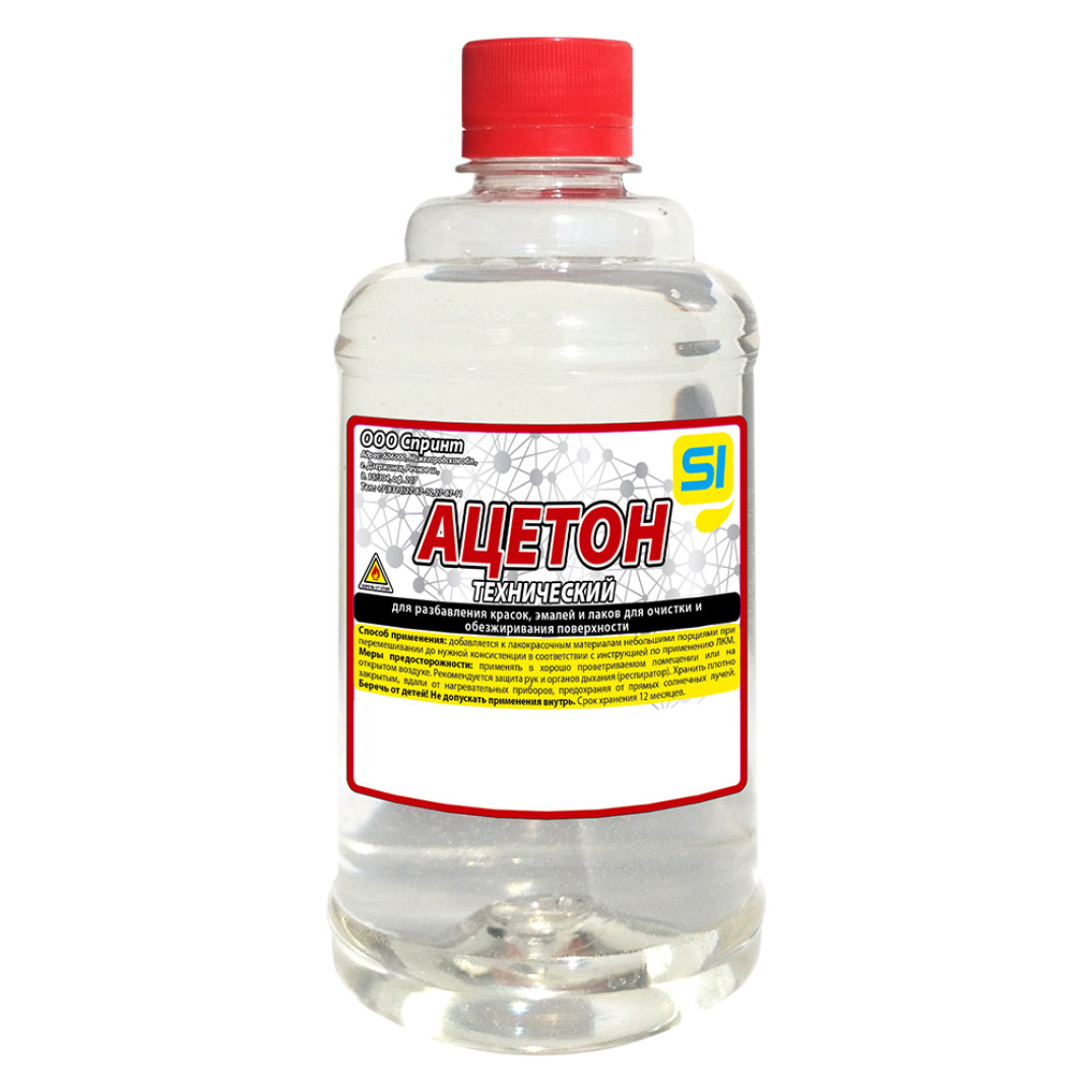 Ацетон технический ГОСТ 2768-84 0,5 л - это прозрачная бесцветная летучая жидкость предназначенная для разбавления красок, эмалей и лаков. Так же, подходит для очистки и обезжиривания поверхностей. Хорошо растворяет многие органические вещества: ацетилцеллюлозу, нитроцеллюлозу, азотосодержащие соединения, некоторые виды солей. Легко очищает загрязненные поверхности от клея, монтажной пены, масляных пятен.