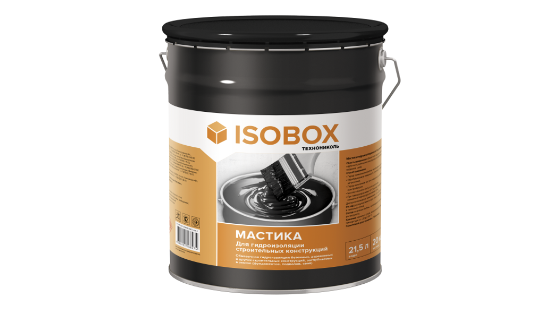 Мастика гидроизоляционная ISOBOX представляет собой полностью готовый к применению материал на основе нефтяного битума, содержащий технологические добавки, минеральные наполнители и растворитель.