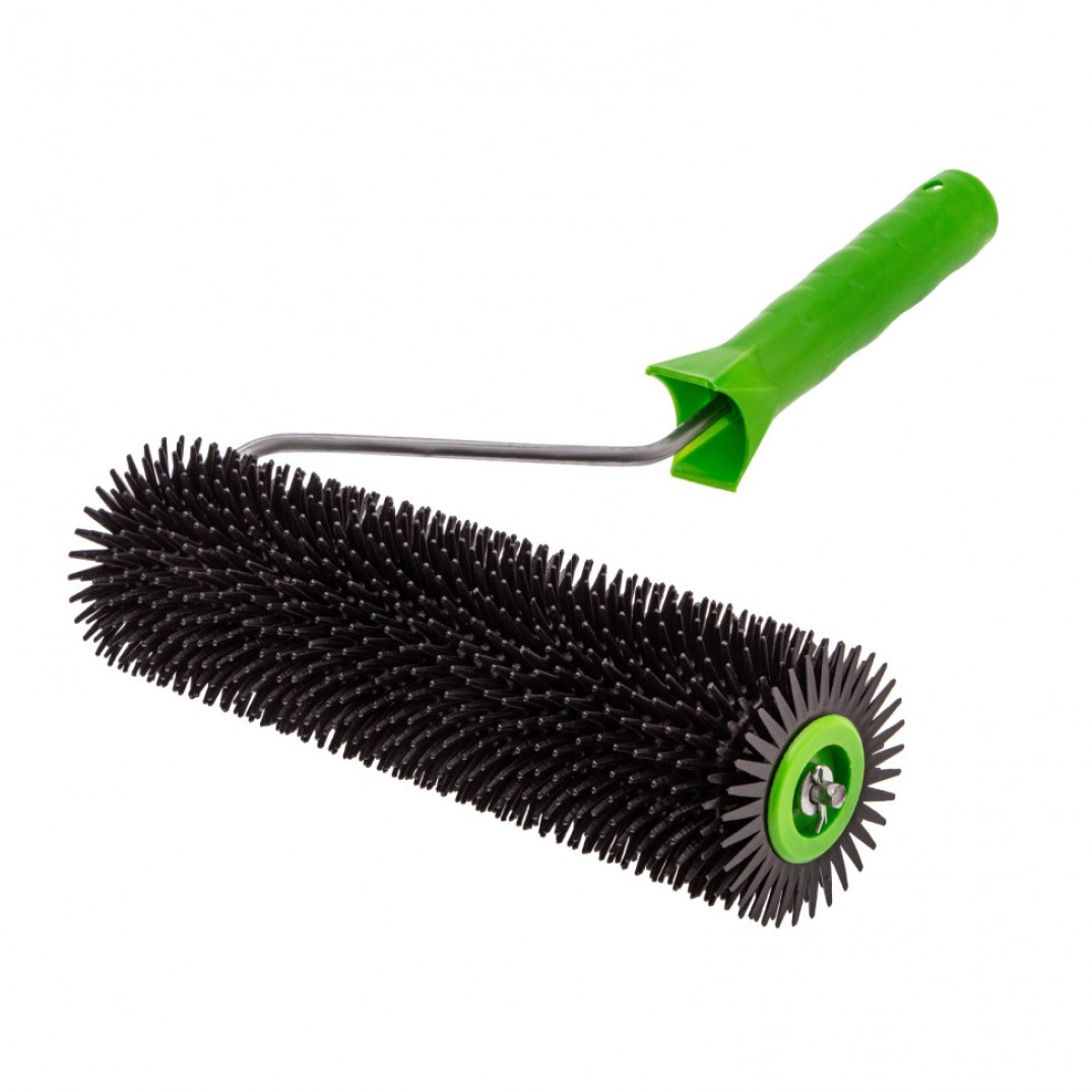 Валик игольчатый Сибртех 81110 с ручкой, длина 240 мм, применяется при монтаже наливных полов, а также при работе с другими вязкими материалами для удаления воздушных пузырей и полостей между рабочими слоями. Благодаря ширине 200 мм валик можно использовать в узких местах и углах. Иголки длиной 14 мм подходят для покрытий небольшой толщины.