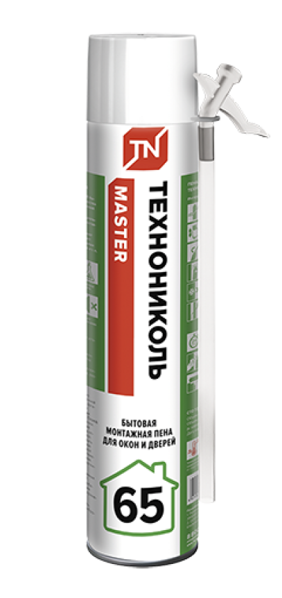 Пена монтажная ТЕХНОНИКОЛЬ MASTER 65 Бытовая представляет собой полиуретановую монтажную пену высокого качества на основе уникальной формулы, разработанной собственным научным центром. Монтажная пена ТЕХНОНИКОЛЬ обеспечивает отличную звуко- и теплоизоляцию и обладает хорошей адгезией к большинству строительных материалов: бетону, дереву, металлу, камню и т. п. Высокая заполняемость больших пустот
