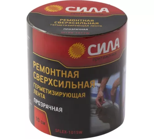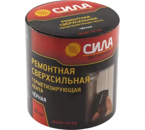 Герметизирующая лента СИЛА SFLEX-1015B (ремонтная; сверхсильная; 10 см х 1,5 м; черная) может клеиться на абсолютно любую поверхность, любой текстуры и формы. При помощи сверхсильной клейкой ленты можно отремонтировать предметы даже под водой. Ремонтной сверхсильной ленте не страшны морозы до 45 и высокие температуры до +85C. Им можно пользоваться в любую погоду. Лента надежно фиксирует не только трещины, прорехи, разрывы и проколы, но и пробоины контейнеров, содержащих жидкости. С помощью неё можно быстро и качественно заделать пробой в надувном матрасе, заклеить дерево и стекло, пластмассу и металлы. Преимущества сверхсильной клейкой ленты: не теряет свойства при контакте с водой закрепляется на любой поверхности в составе высокий процент синтетической резины обладает сверхсильным клеящим веществом выдерживает давление до 50 кг.