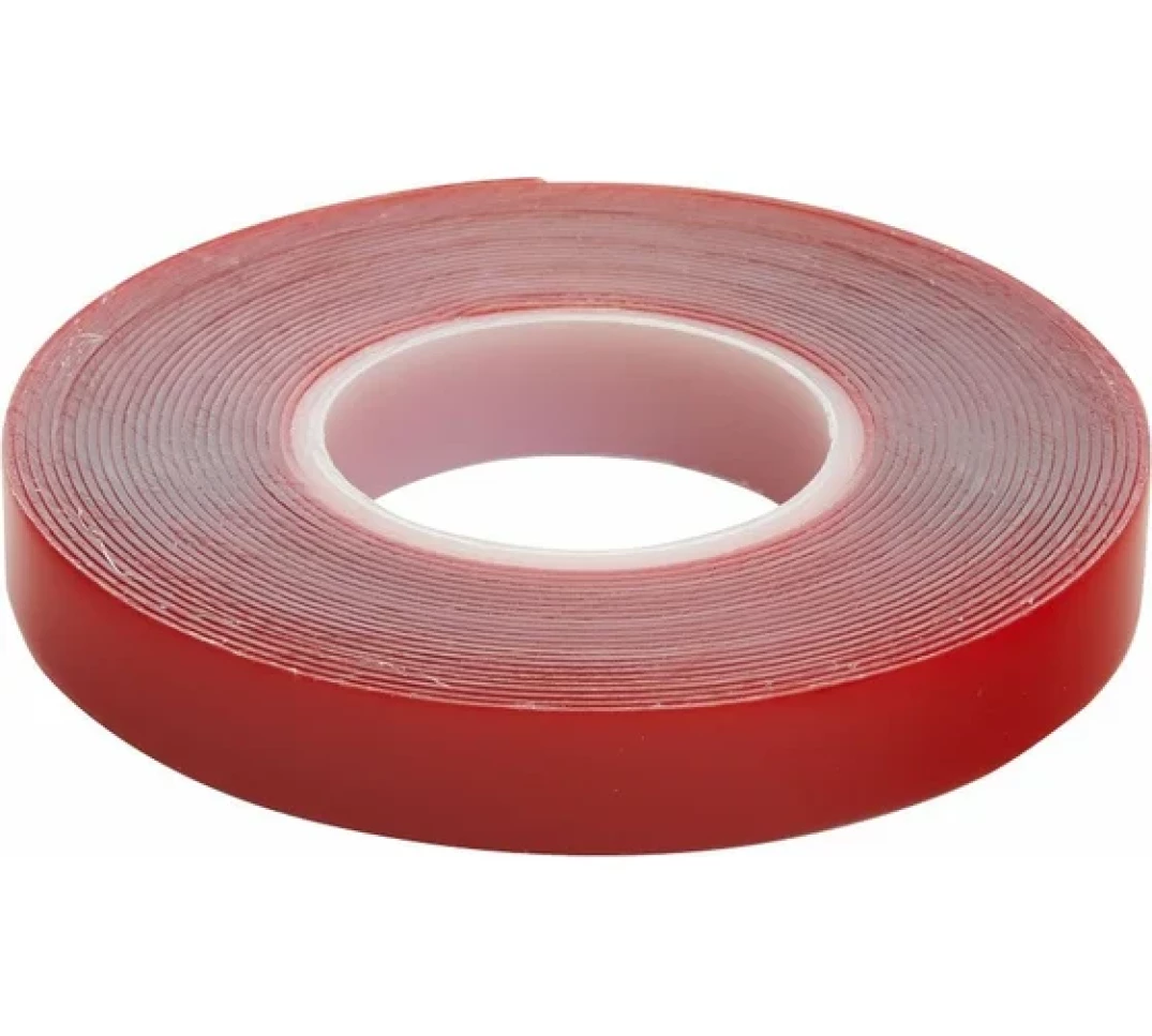 STEKKER скотч акриловый двусторонний 0,8x12мм,длина 5м, прозр. , красная подложка