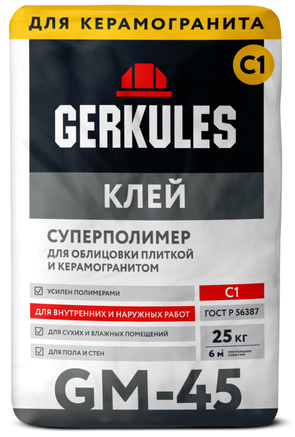 Геркулес суперполимер PRO клей д/плитки 25 кг GM 45