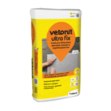 Vetonit Ultra Fix - клей для облицовки фасадов камнем и керамогранитом. Класс С2 Т S1 по ГОСТ Р 56387-2018. Подходит для стен и пола, для наружной облицовки. Рекомендован для облицовки фасадов клинкерной плиткой. Поперечная деформативность позволяет работать с плиткой без ограничений формата - плитка особо большого размера или с разницей сторон 1/2 и более. Нивелирует вибронагрузки и динамические нагрузки - подходит для зон с повышенным трафиком: входные группы, общественные помещения.