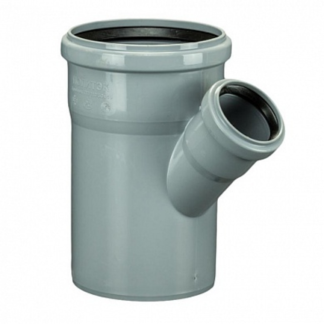 Тройник канализационный 45°, диаметры подключения: 110 мм | 50 мм, тип системы: внутренняя, угол изгиба: 45°, максимальная температура рабочей среды: 95°C, цвет: серый, материал корпуса: полипропилен, срок службы: 50 лет.