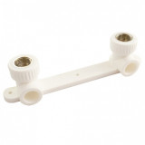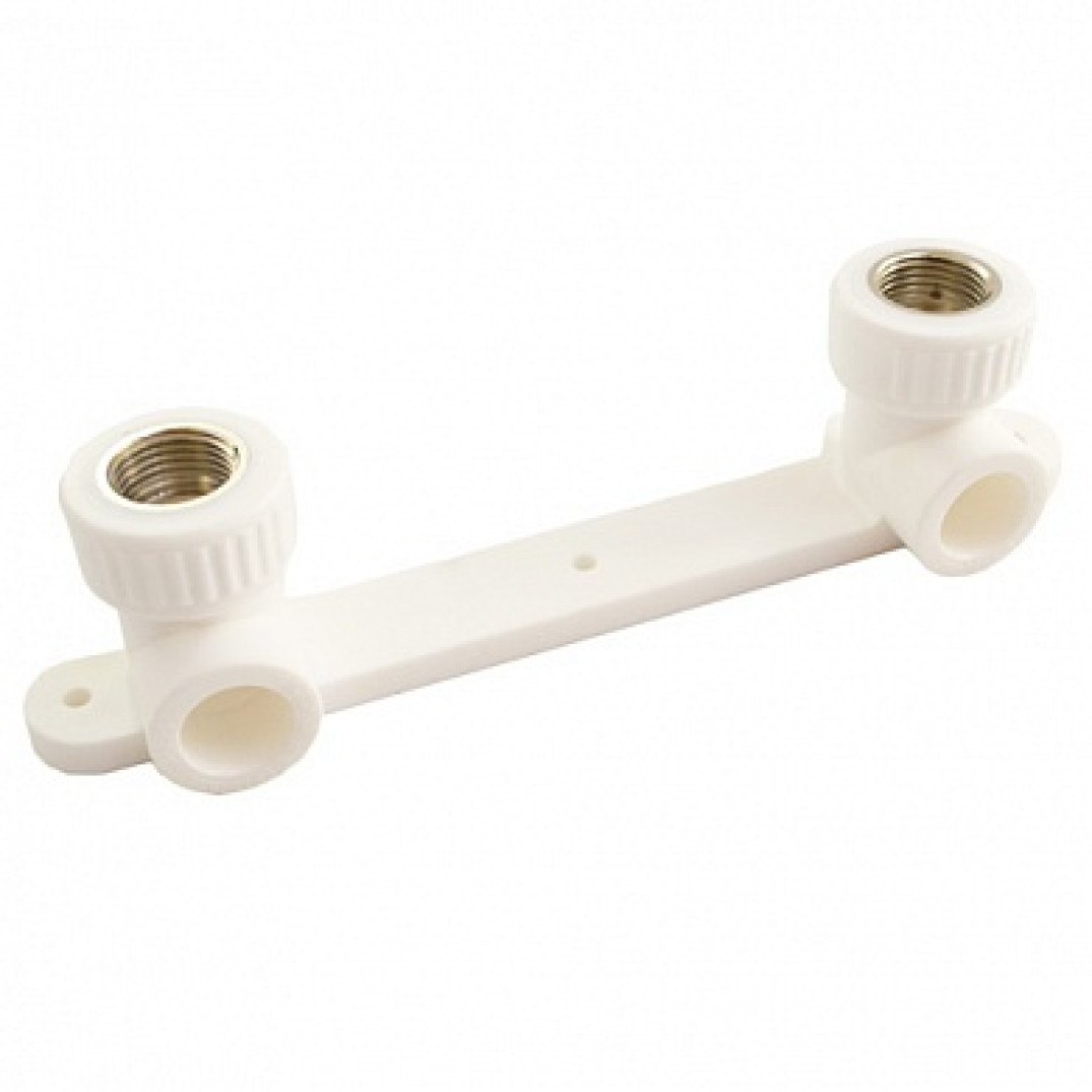 Фитинг полипропиленовый PPR, номинальное давление (PN): 25, армирование: металл (алюминий), диаметр корпуса: 20 мм, рабочее давление: 2.5 МПа, тип резьбы: внутренняя, номинальный диаметр резьбы: ½", цвет: белый. Комплект настенный для смесителя представляет из себя комбинированный полипропиленовый фитинг. Используется для монтажа к трубопроводу и установки смесителя непосредственно на стене. Фитинги из полипропилена (PPR) предназначены для соединения полипропиленовых трубопроводов для внутренних систем отопления горячего и холодного водоснабжения, сжатого воздуха, транспортировки различных сред неагрессивных к материалам трубопровода, методом термической муфтовой сварки, при помощи специального сварочного оборудования. Изготавливаются фитинги методом инжекционного прессования и экструзии. Для соединения полипропиленовых трубопроводов со стальными, а также со стальными элементами трубопроводов соединяемых посредством резьбы, используются комбинированные фитинги.