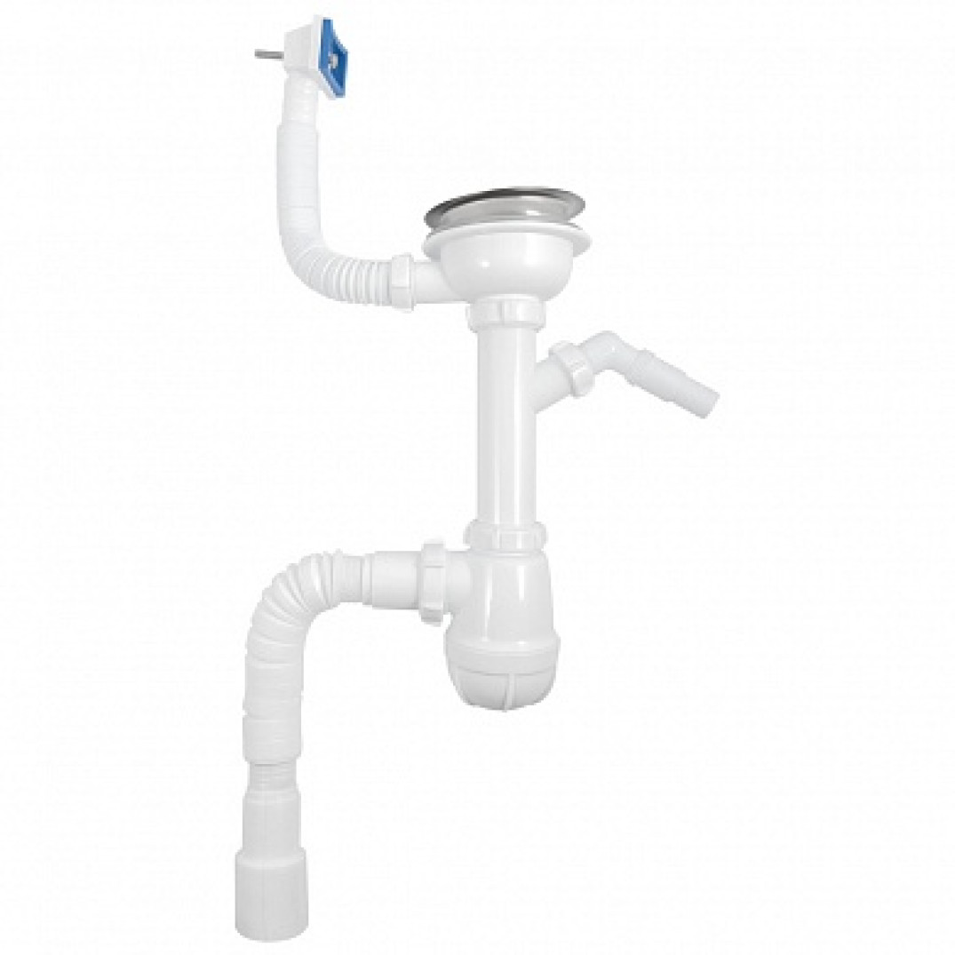 B0147 Сифон для мойки 3 1/2"х40 с мет.реш. с прямоуг. переливом с отв. с/м с г.т. 40х40/50