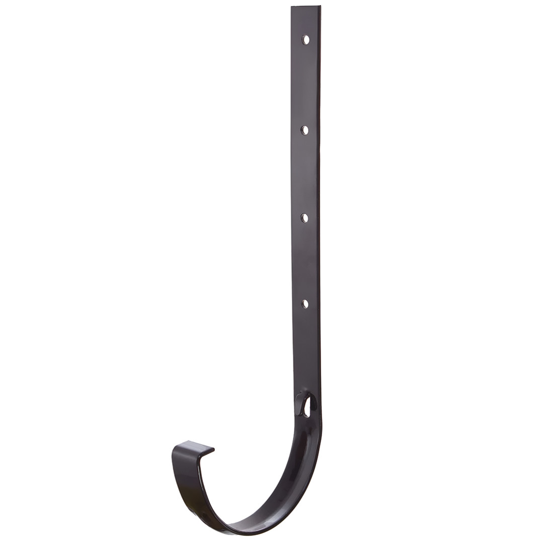 Кронштейн желоба металлический предназначен для крепления желобов и монтируется напрямую на лобовую доску при значительном свесе кровли. Кронштейн имеет вес в 290 грамм. Изготовлен из цельной металлической ленты толщиной 3 мм. Порошковый окрас гарантирует целостность лакокрасочного покрытия при сгибе изделия.