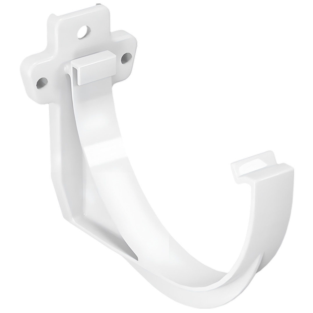 Кронштейн желоба пластиковый предназначен для крепления желобов и монтируется напрямую на лобовую доску либо при помощи металлических удлинителей к стропильной системе кровли. Кронштейн имеет вес в 41 грамм и толщину стенок 2,2 мм. Благодаря этому он становится прочнее и может эксплуатироваться в жестких условиях в диапазоне температур от -50 до +50 градусов. Отсутствие полостей в теле кронштейна обеспечивает максимальную жесткость и надежную фиксацию желоба в системе.