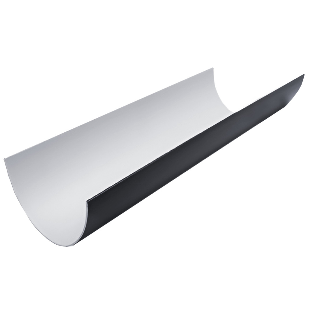 Желоб водосточный диаметром 120 мм предназначен для сбора воды, стекающей с кровли. Желоб имеет большой вес в 2120 граммов и толщину стенок не менее 2 мм. Благодаря этому он становится прочнее и может эксплуатироваться в жестких условиях в диапазоне температур от -50 до +50 градусов. Желоб имеет полукруглую геометрию с высотой бортиков в 65 мм. Проработанное конструктивное решение увеличивает пропускную способность до 10%, используя желоб по максимуму.