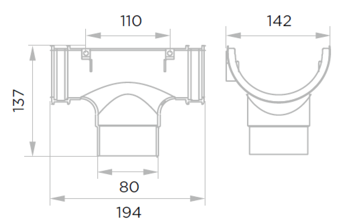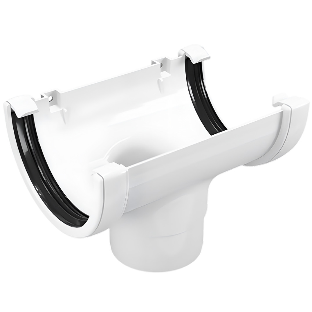 Воронка желоба предназначена для отвода потока воды из желоба в трубу. Воронка желоба имеет большой вес в 272 грамма и толщину стенок 2,2 мм. Благодаря этому она становится прочнее и может эксплуатироваться в жестких условиях в диапазоне температур от -50 до +50 градусов. Уплотнение в элементе достигает верхнего края. Это минимизирует риск протекания, увеличивает пропускную способность желоба и срок службы системы в целом.